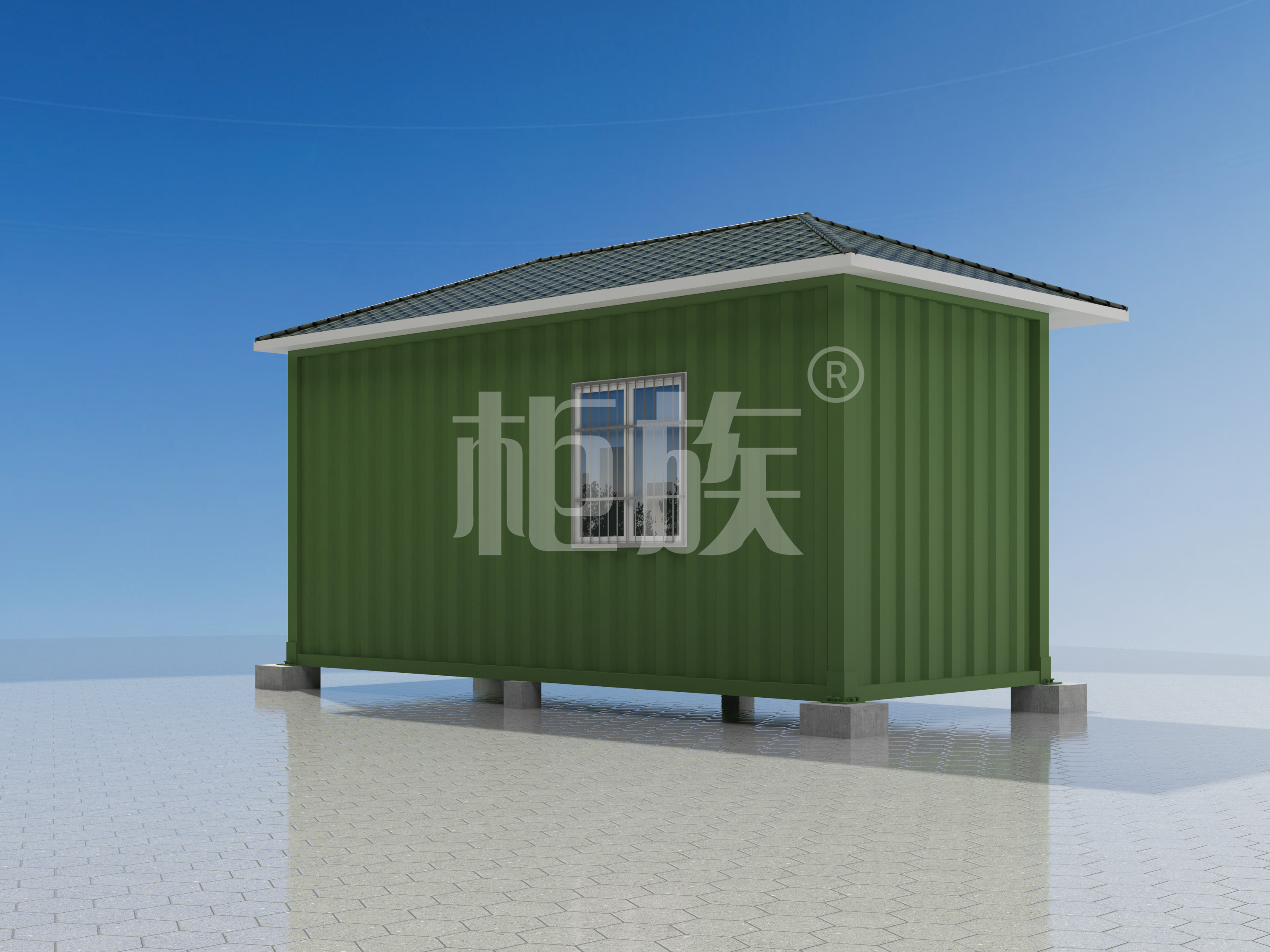 Galvanized rectagular steel tube frame, asphalt tile pitched roof, simply decorated wall. It is beautiful in appearance, good in windproof and moisture-proof, and can be used by fishpond breeding staff.
