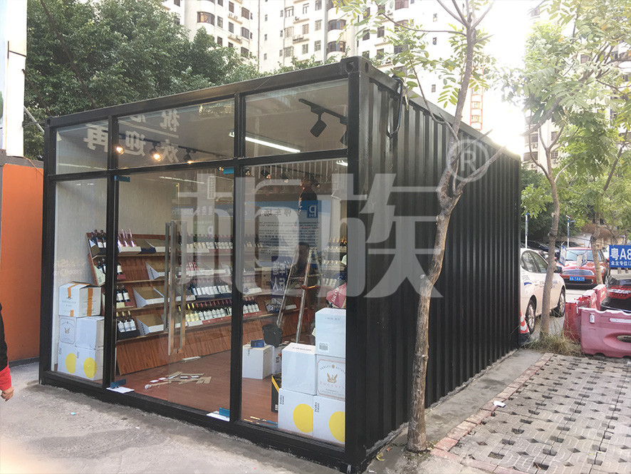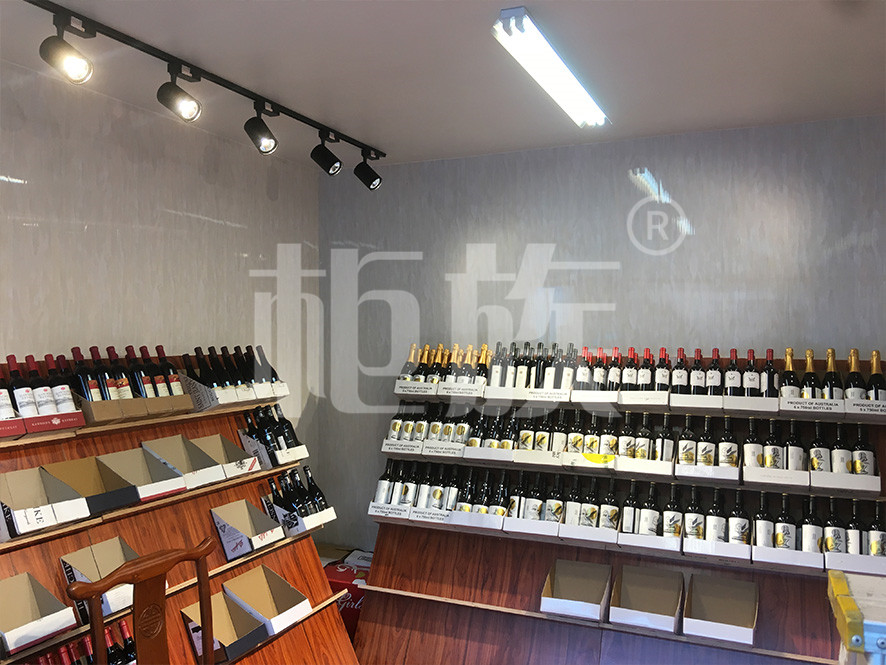 展柜外觀使用黑色噴漆,簡潔大氣。內部平面裝修,搭配射燈,視覺明凈,可以很好地將顧客的注意力吸引至琳瑯滿目的紅酒產品上。