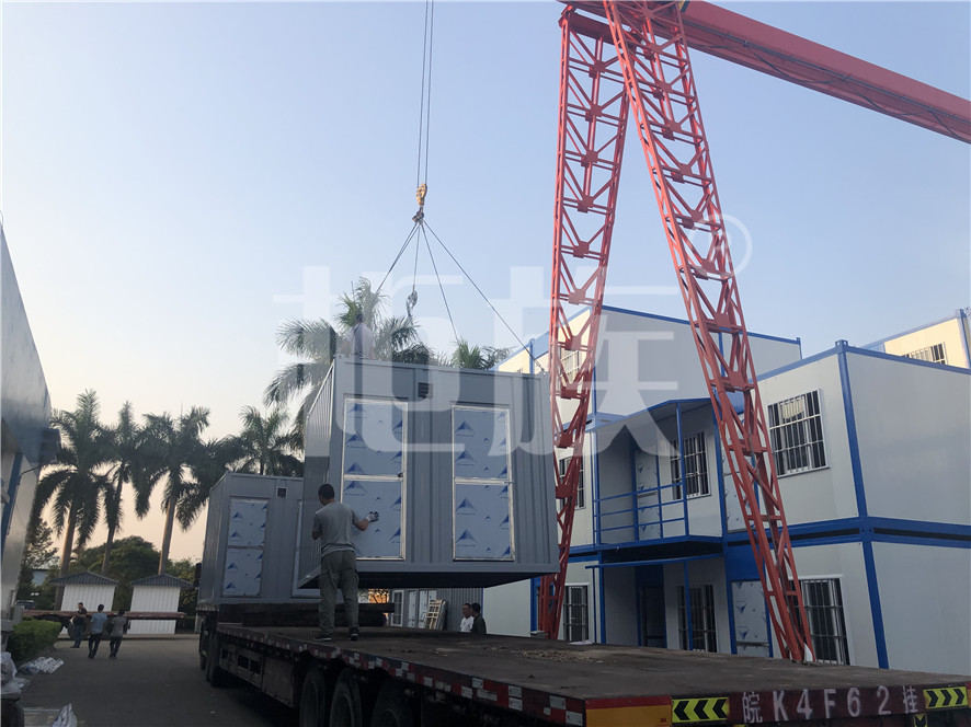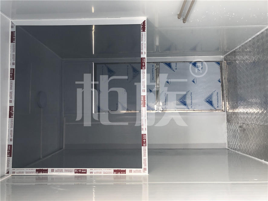 箱體用材:鍍鋅方管框架、A級(jí)大波紋夾芯墻板、不銹鋼門、鋁花紋地板。