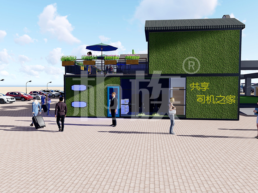 我們針對不同車流量的服務區(qū),設計了不同大小和造型的集裝箱休息室,并延展了其功能,包括電動車充電樁、太空倉、單間、按摩椅、洗衣機、沖涼房等。