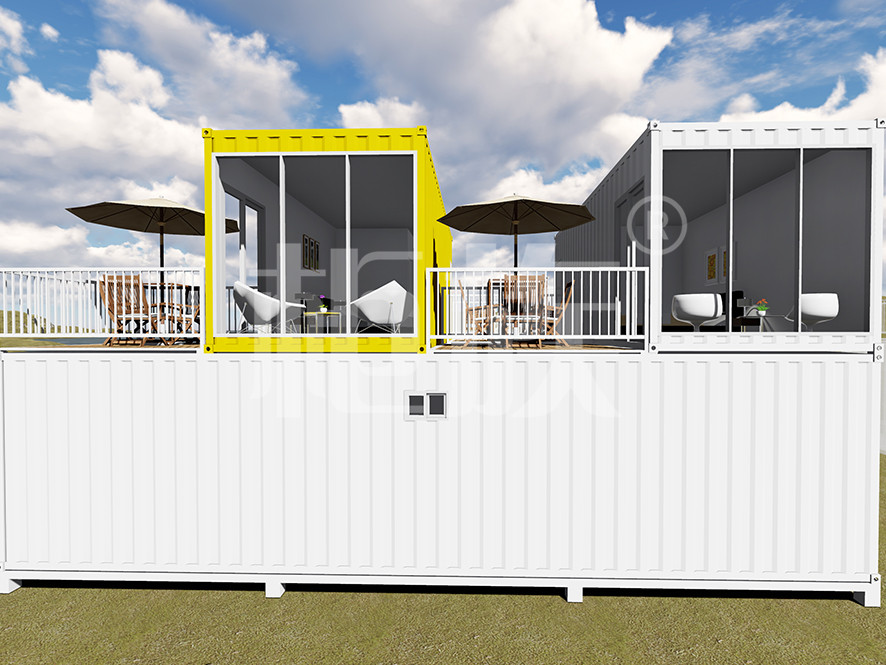 組合式公寓采用多個集裝箱疊加、錯列組合,庭院陽臺可根據(jù)屋主意愿設計建造,盡顯個性。內(nèi)部實用空間充足,配套設施齊全。